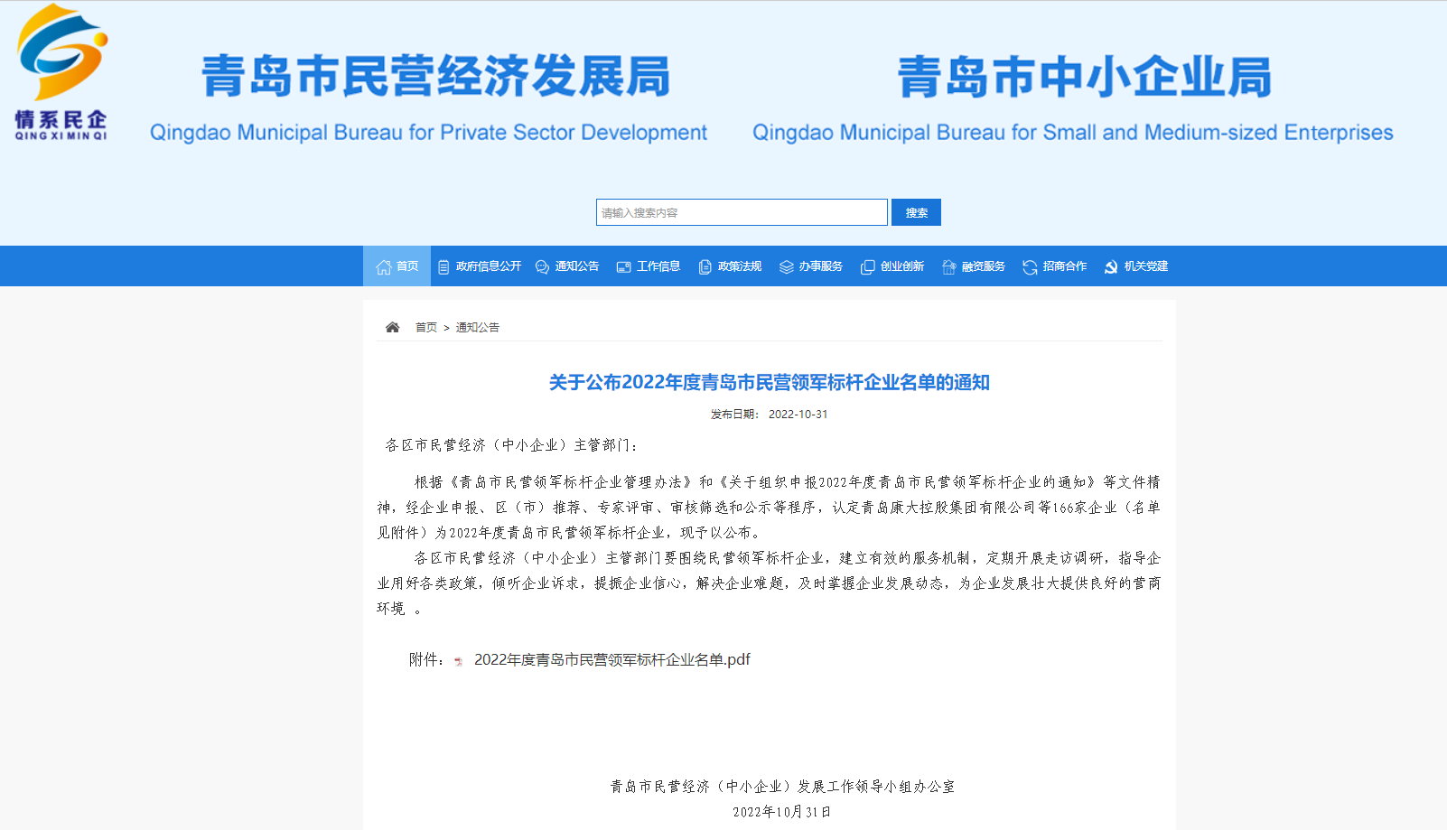 2022年青岛市政府工作报告明确提出,“实施民营经济壮大计划,培育民营领军标杆企业100家以上,建设全国民营经济示范城市”。