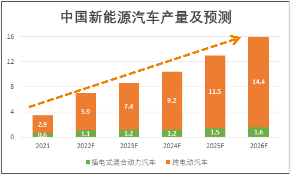 习近平主席在《生物多样性公约》第十五次缔约方大会发言指出,我国力争在2030 年前实现“碳达峰”和 2060 年前实现“碳中和”目标。开发新型能源是实现“双碳”目标的重要举措,特别是新能源汽车的开展和推广。国际数据公司IDC预测,中国新能源汽车增长速度将由2021年的350万辆增长到2026年的1600万辆 。