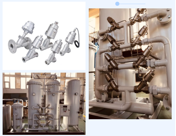 以制氮机为例,在作业过程中,双吸附塔并联交替进行吸附,一塔工作一塔再生,陆续在产氮,在这个过程需要阀门不断开、关高频率交替吸附,在制氮过程一旦有一只阀门出现泄露,整个系统制氮的纯度都将遭受影响,导致设备无法正常运行。因此,制氮/制氧设备对阀门的寿命、密封稳定性要求非常高。